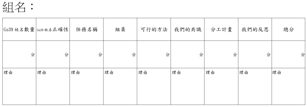 2.完成小組反思和姓名任務評分表